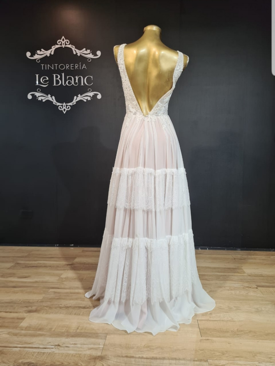 Vestido muy pero muy cómodo, se ve precioso con el movimiento al caminar y bailar, de muy buena hechura y telas soñadas, ideal para novias bohemias que amen el estilo vintage. ESTÁ IMPECABLE, lo limpié con Tintorería Le Blanc (especialistas en vestidos de novia).