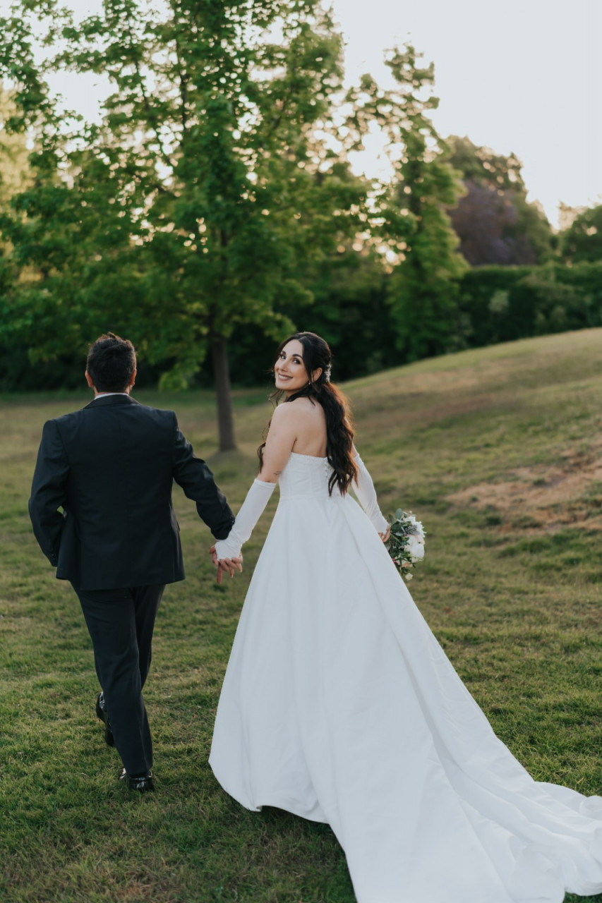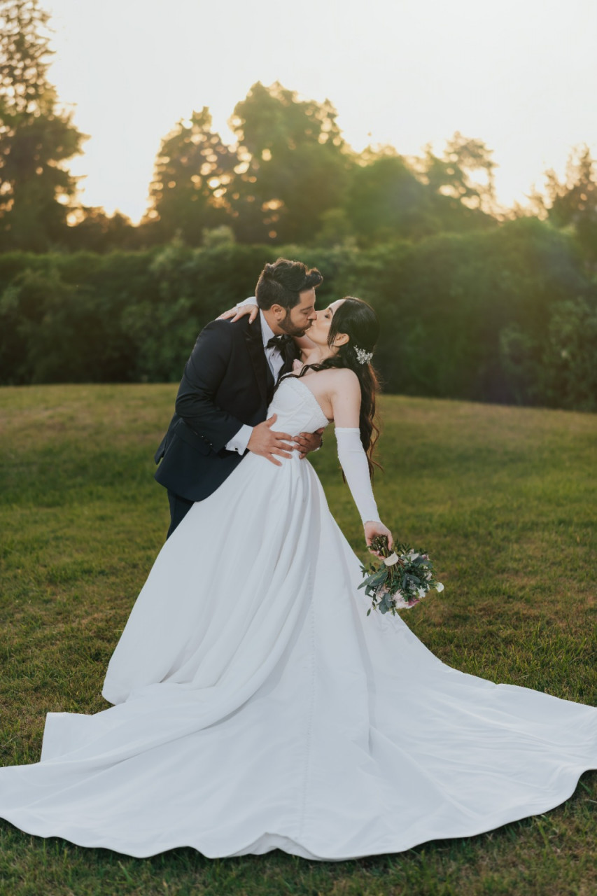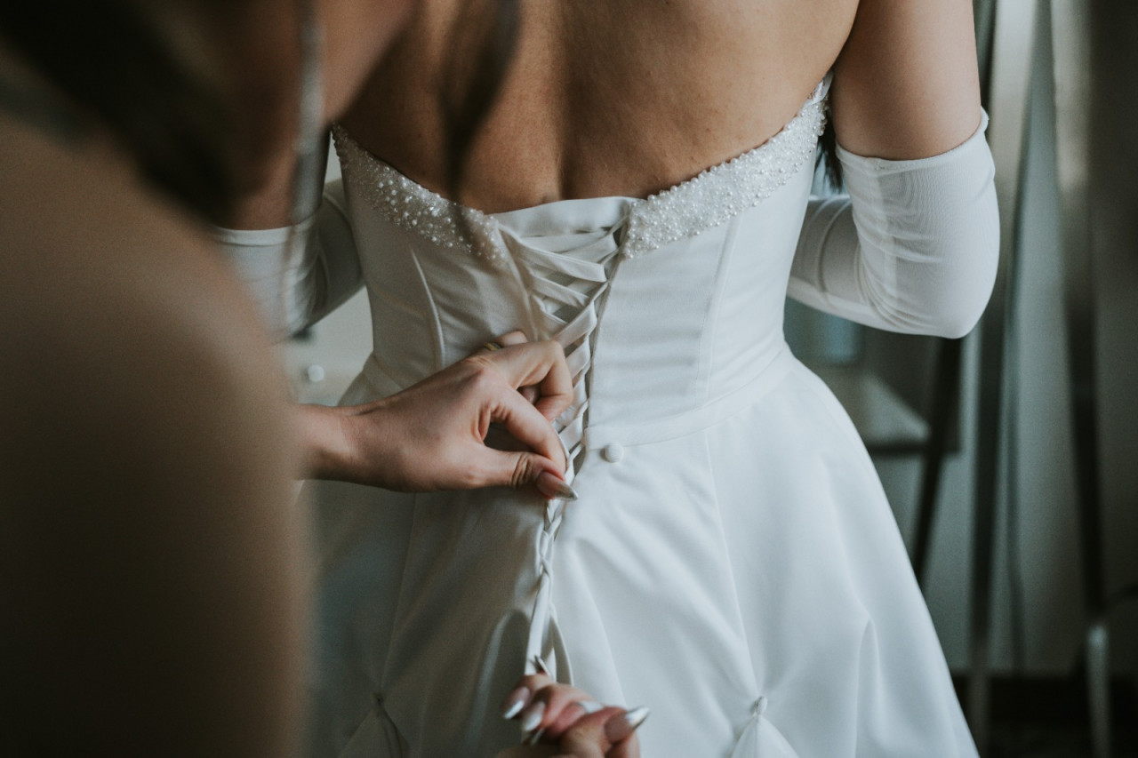 Vestido confeccionado en Ignacia novias, color marfil, con detalle de pedrería en el corsé, talla 38, corsé ajustable, tiene un tajo elegante en la pierna, inlcuye guantes. Recién lavado en la tintorería!