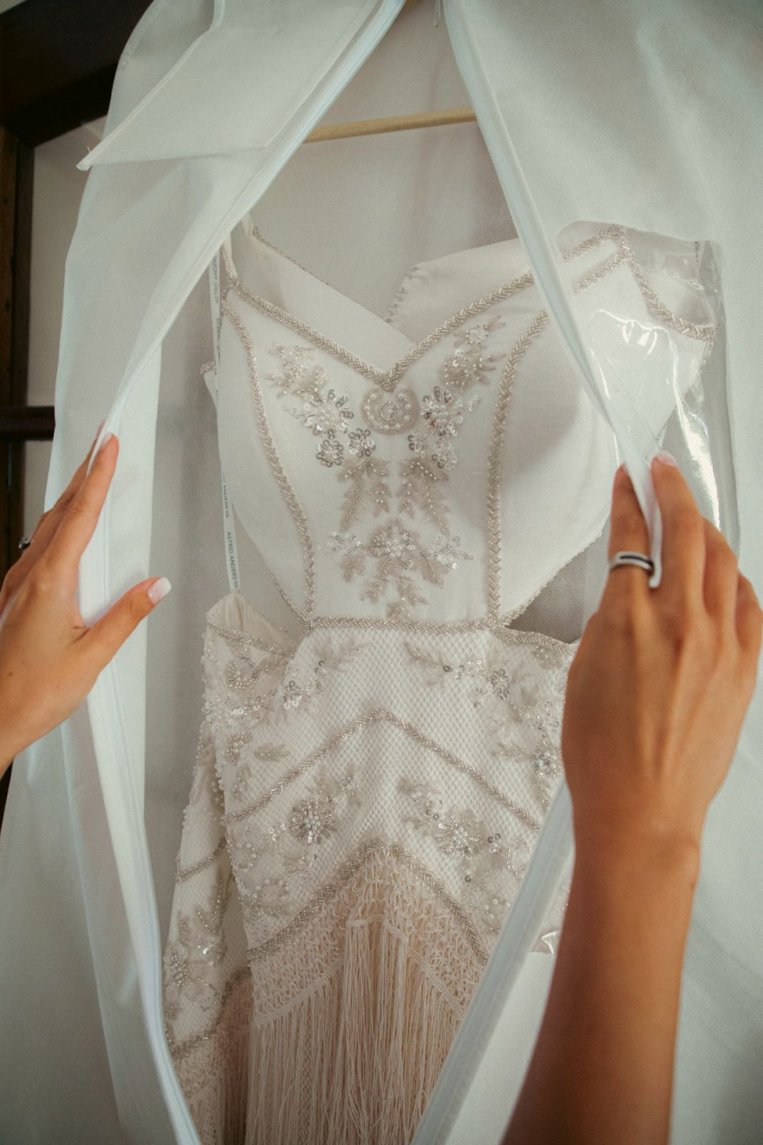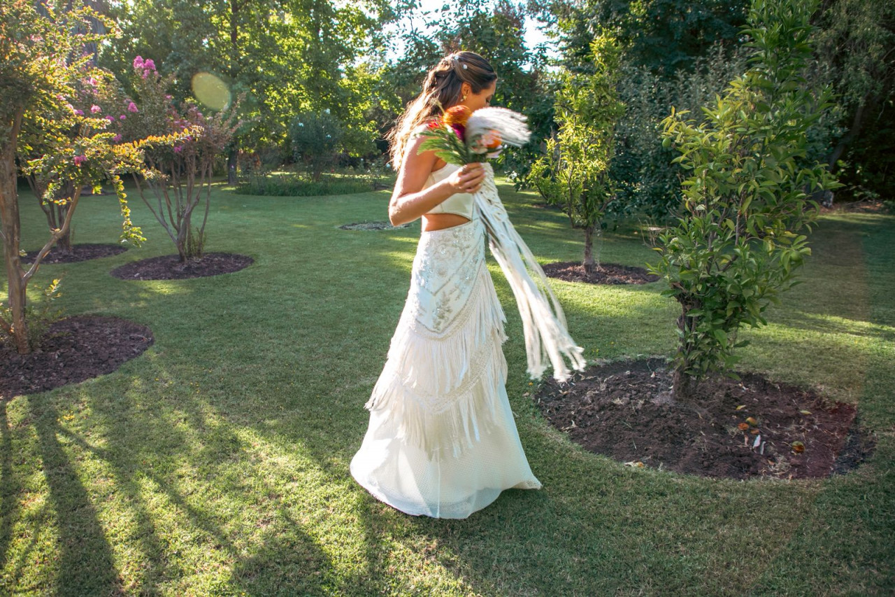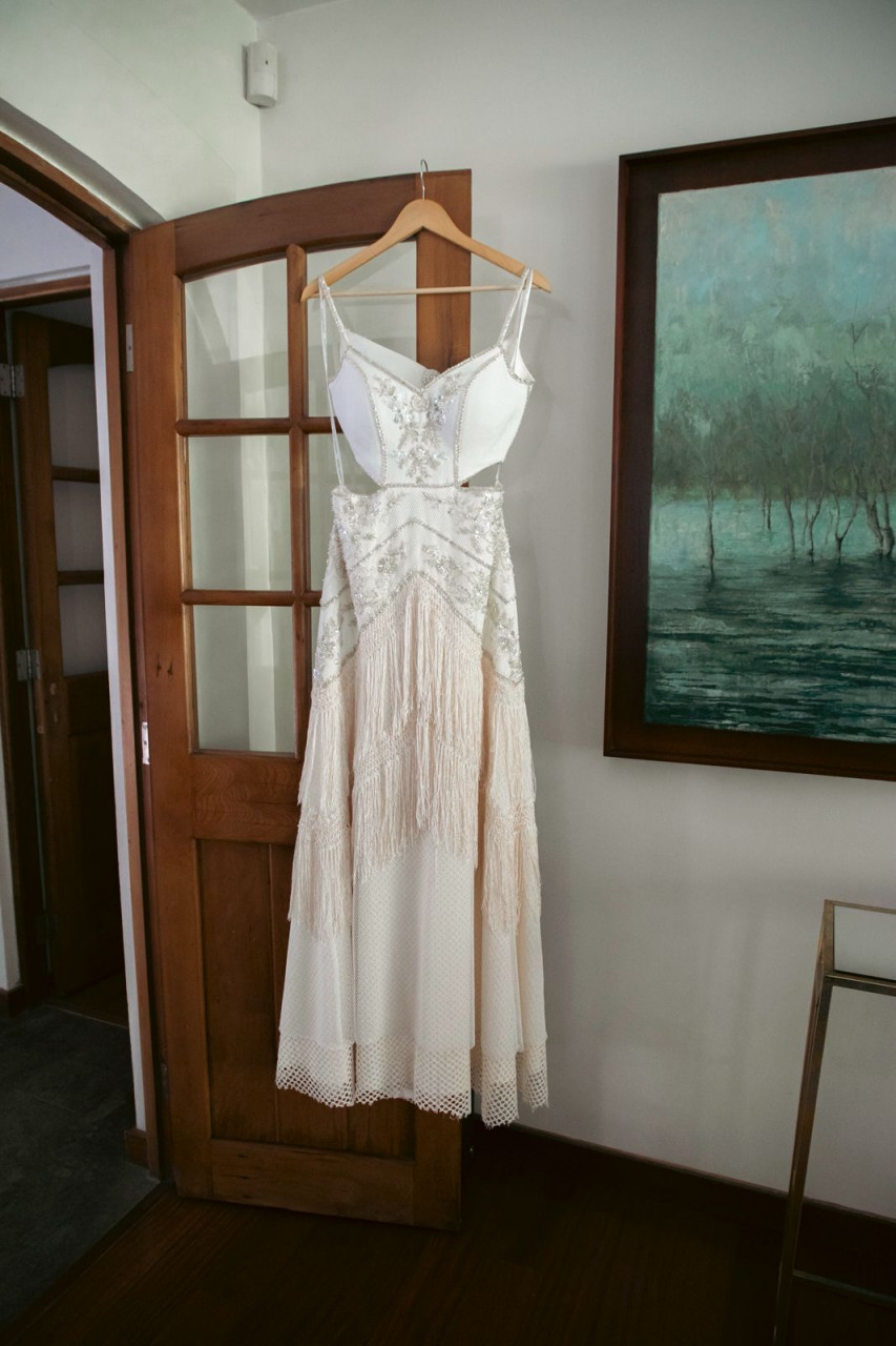 Vestido hecho a mano por Astrid Andereya * Vestido en Lino de base con 2 capas de telas de algodón en falta y piedreria. * Talla s/m * Incluye sostén interno talla 34B - puede ser cambiable o quitarle * Largo (Novia mide 1.70)