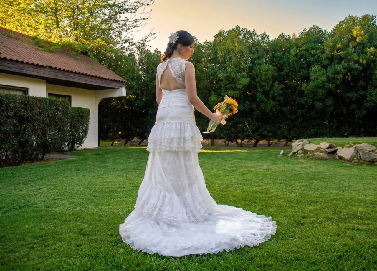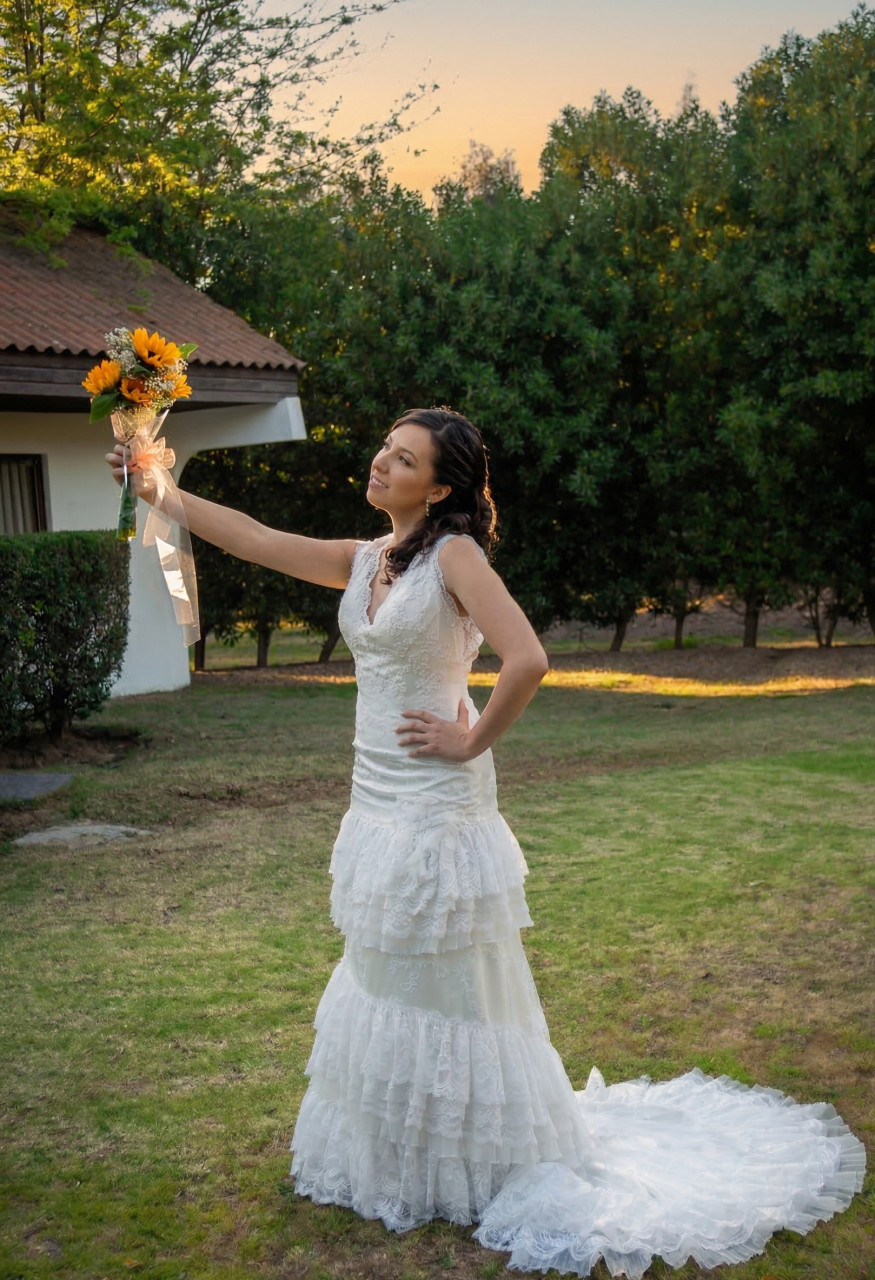 Vendo mi hermoso vestido usado únicamente el día de mi matrimonio. Se encuentra en excelente estado y ya pasó por un proceso profesional de tintorería, por lo que está listo para usarse.