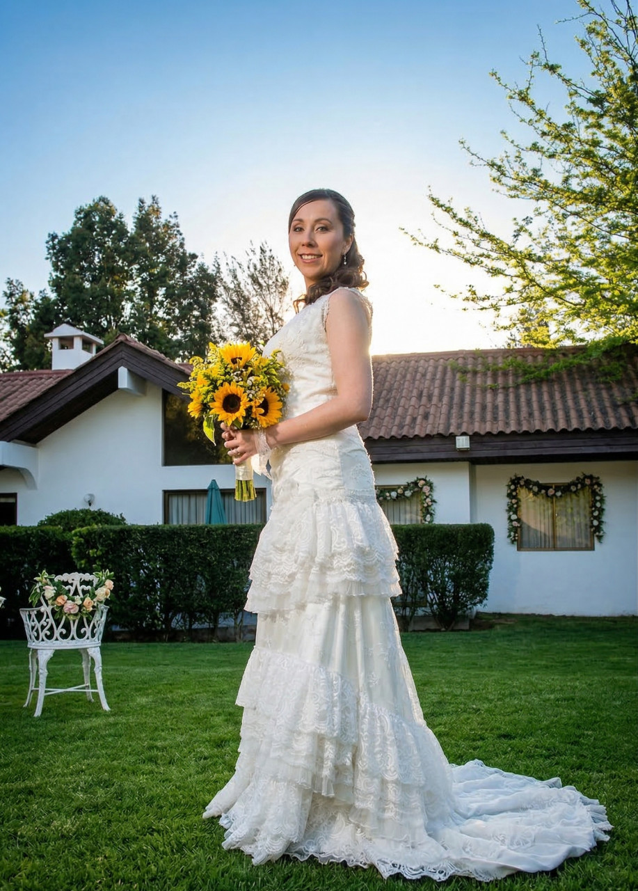 Color: Ivory (marfil), un tono que aporta calidez y suavidad a la piel. Combina perfecto para todo tipo de ramo de flores vibrantes, cómo los girasoles que utlicé en mi matrimonio.