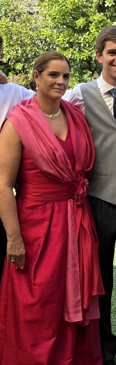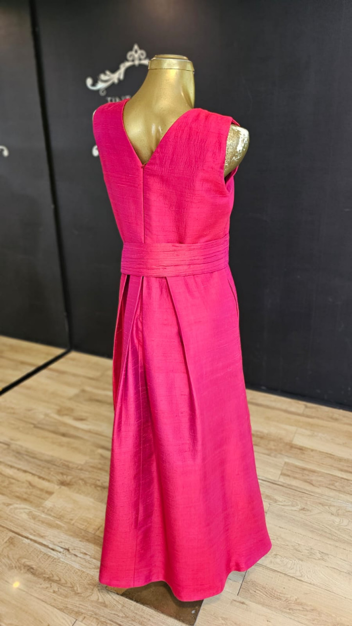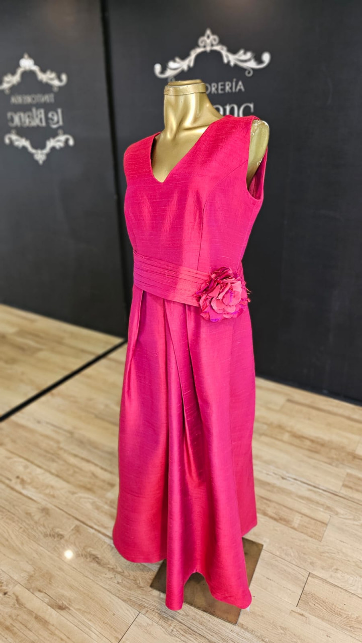 Vestido Changtun de seda color frambuesa, con echarpe tornasolado en los tonos. Talla 40 Estatura 1.60 Limpio lavado en tintorería Le blanc Incluye echarpe está como nuevo, un solo uso. Boutique Trio