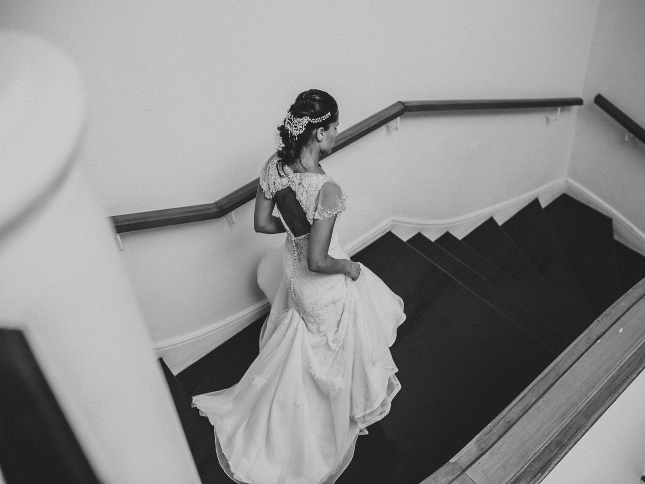Mi vestido fue diseñado y confeccionado por Maricel Espínola e Hijas. Está recién lavado por Tintorería Le Blanc. Es talla 40 y mido 1.63. Usé zapatos de taco relativamente bajo. Es de raso blanco y arriba tiene una delicada tela con flores bordadas.