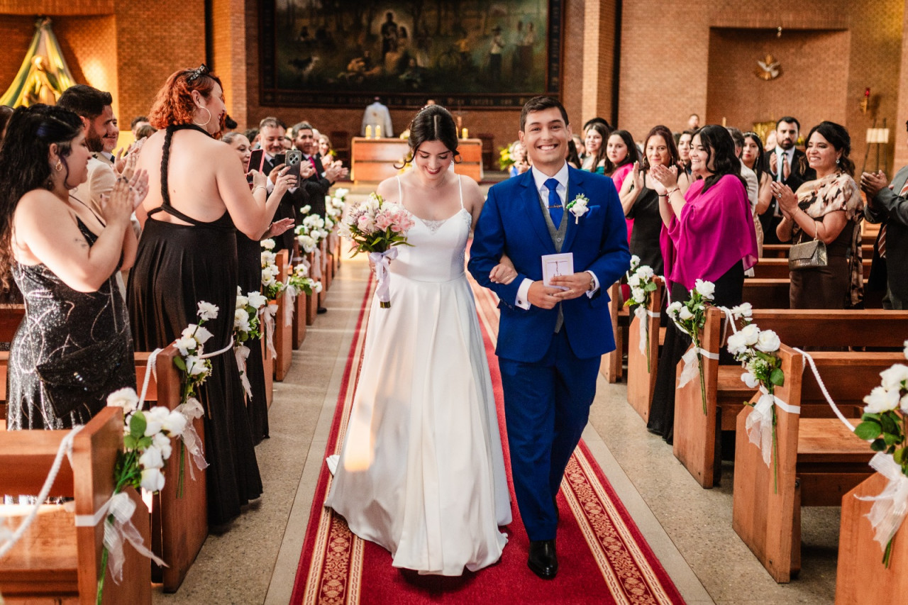 Es de color blanco clásico, confeccionado por Ana Miranda Novias, lo que asegura calidad y diseño exclusivo.