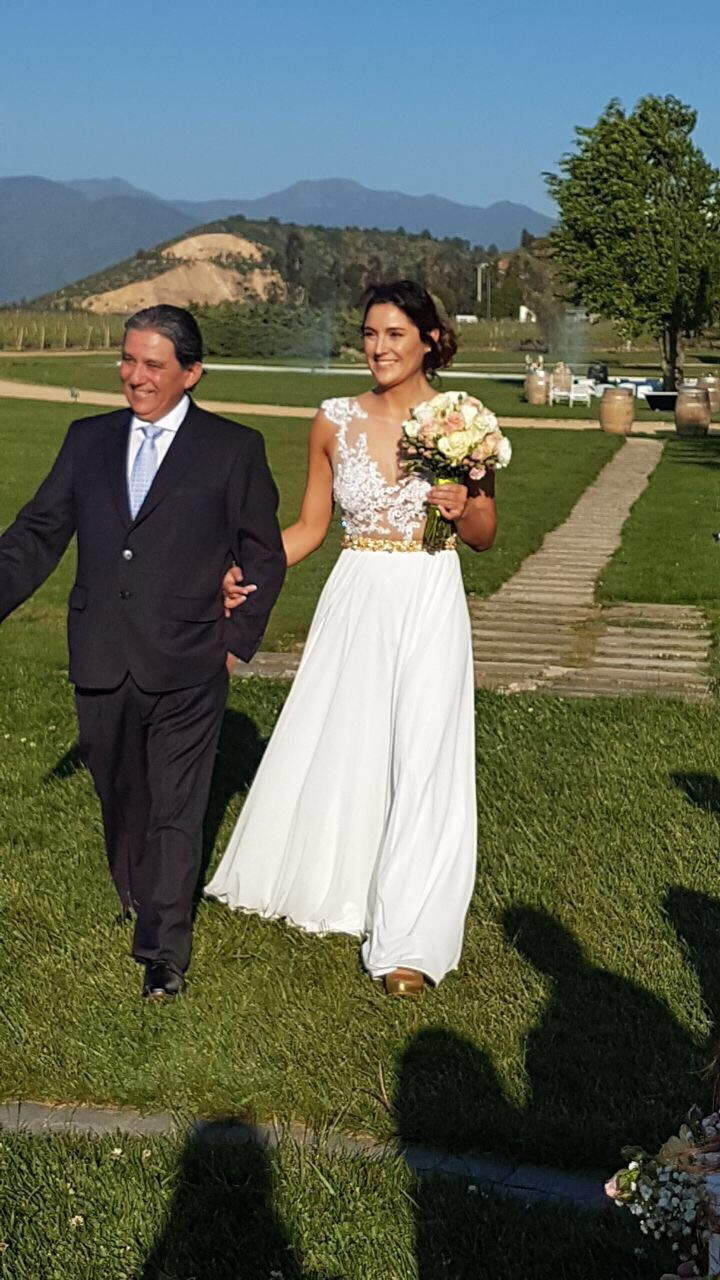 Talla: 38 Estatura Novia: 1.64 Altura Tacos: 4cms. 100% Limpio Diseñado de cero a medida por Fran larrain con Bordado a mano. Queda increíble puesto y te hace lucir una figura espectacular.
